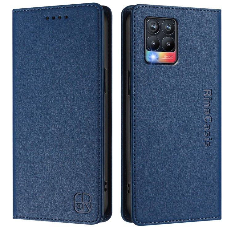 Funda de Cuero con Doble Pliegue y Succión Magnética para Realme 8 4G/8 Pro 4G Rc01 (Azul Oscuro)
