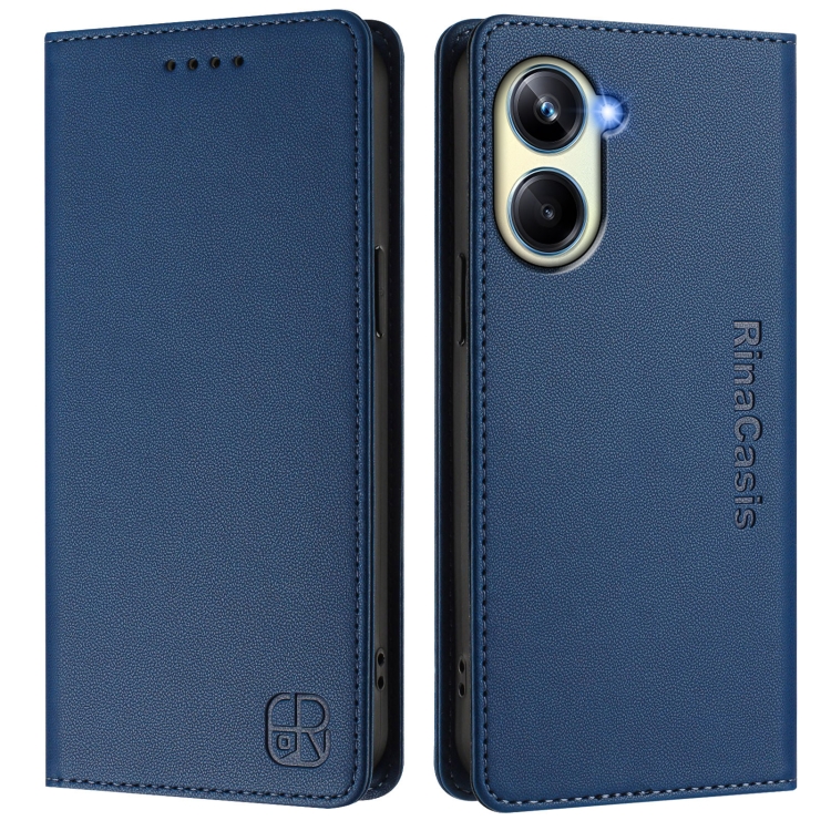 Funda de Cuero con Doble Pliegue y Succión Magnética para Teléfono Realme 10 Pro 5G Rc01 (Azul Oscuro)