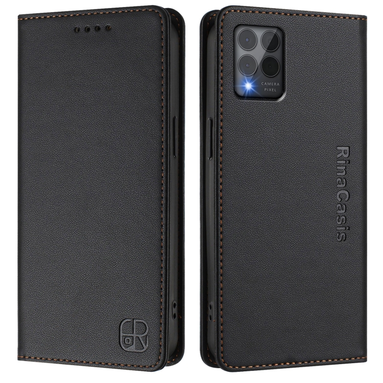 Funda de Cuero T-Mobile Revvl 6 Pro/6X Pro 5G Rc01 con Doble Pliegue y Succión Magnética (Negra)
