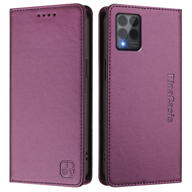 Funda de Cuero con Doble Pliegue y Succión Magnética para T-Mobile Revvl 6 Pro/6X Pro 5G Rc01 (Violeta)