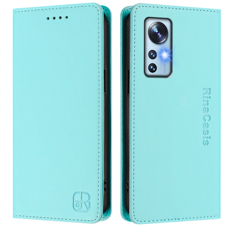 Funda de Cuero con Doble Pliegue y Succión Magnética para Teléfono Xiaomi 12 5G / 12X 5G / 12S 5G Rc01 (Verde Menta)