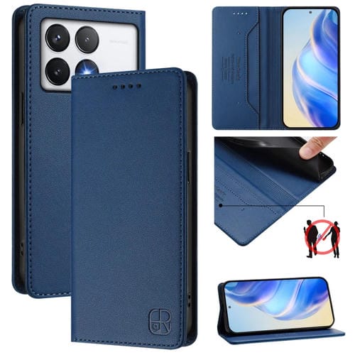 Funda de Cuero con Doble Pliegue y Succión Magnética para Teléfono Xiaomi Poco F6 Pro 5G Rc01 (Azul Oscuro)