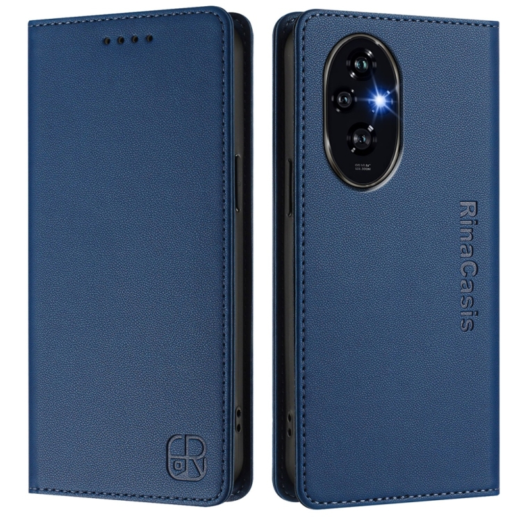 Funda de Cuero Rfid con Doble Pliegue y Succión Magnética para Honor 200 Pro Rc01 (Azul Oscuro)