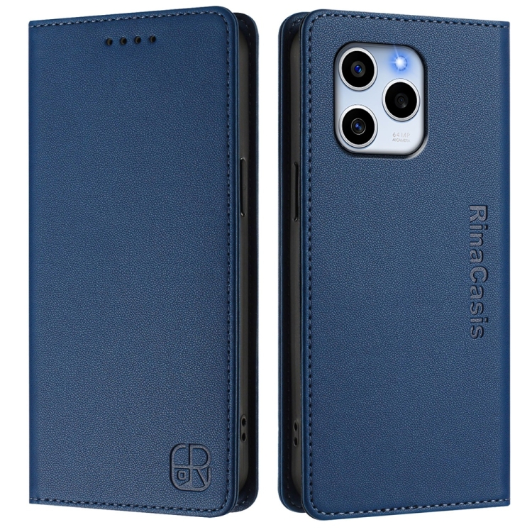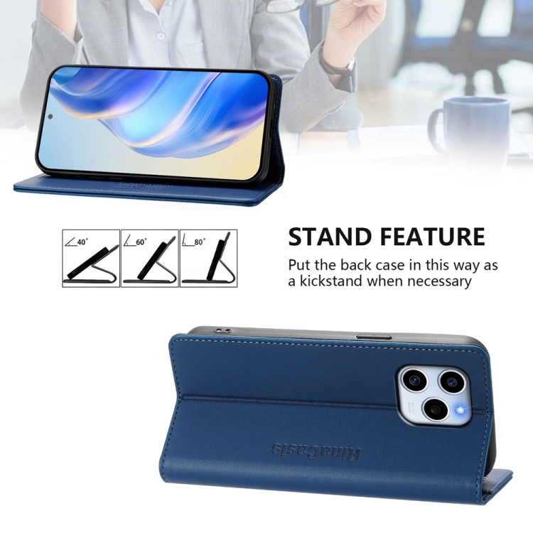 Funda de Cuero con Doble Pliegue y Succión Magnética Rfid para Honor 60 Se Rc01 (Azul Oscuro)