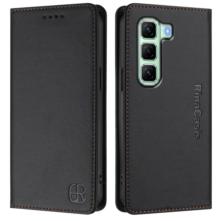 Funda de Cuero con Doble Pliegue y Succión Magnética Rfid para Infinix Hot 50 4G Rc01 (Negra)