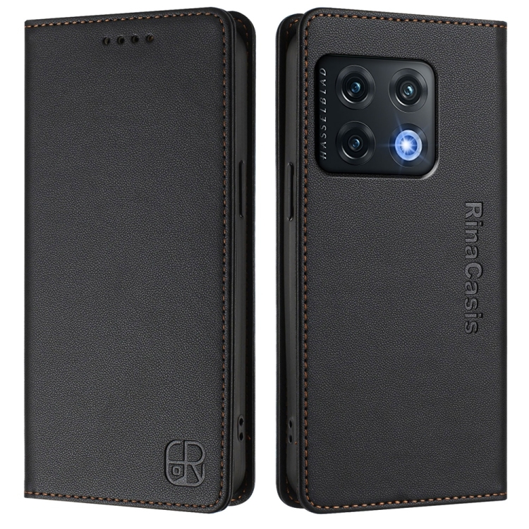 Funda de Cuero con Doble Pliegue y Succión Magnética Rfid para OnePlus 10 Pro Rc01 (Negra)