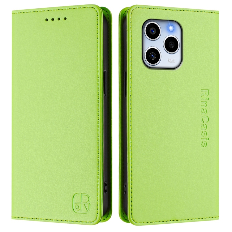 Funda de Cuero para Honor 60 Se Rc01 con Doble Pliegue y Succión Magnética Rfid (Verde Hierba)