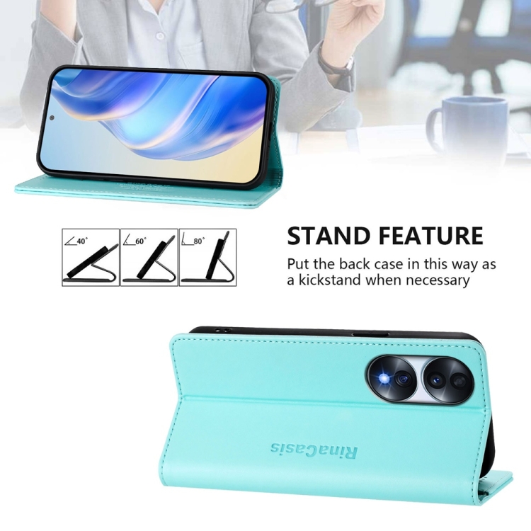 Funda de Cuero RFID con Doble Pliegue y Succión Magnética para Honor 70 Rc01 (Verde Menta)