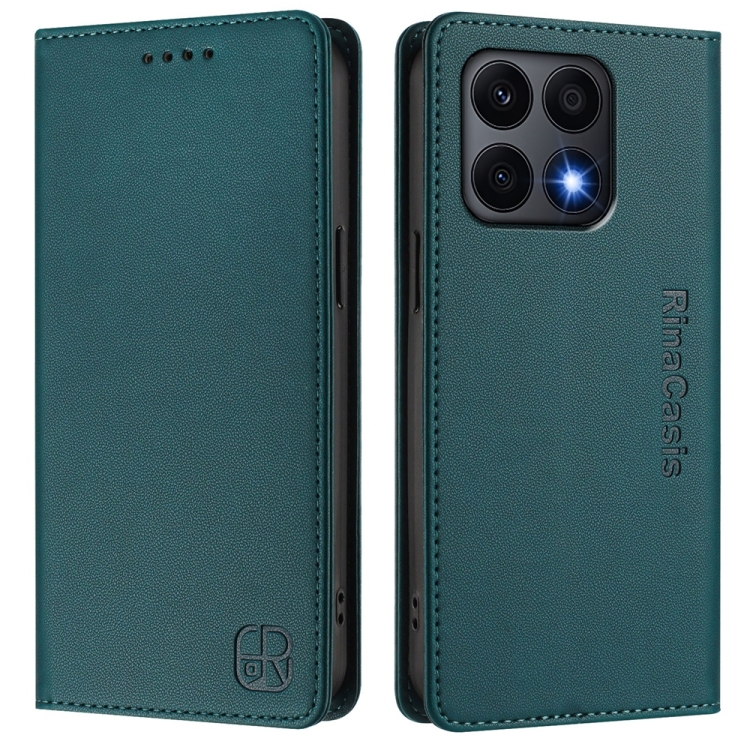 Funda de Cuero con Doble Pliegue y Succión Magnética Rfid para Honor X8A Global Rc01 (Verde Oscuro)