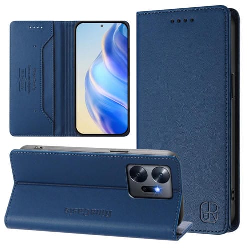 Funda de Cuero con Doble Pliegue y Succión Magnética Rfid para Infinix Zero 20 Rc01 (Azul Oscuro)