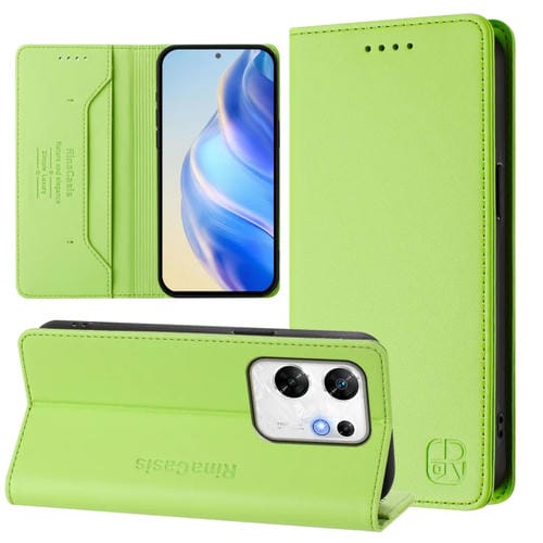 Funda de Cuero con Doble Pliegue y Succión Magnética RFID para Infinix Zero 30 4G Rc01 (Verde Hierba)