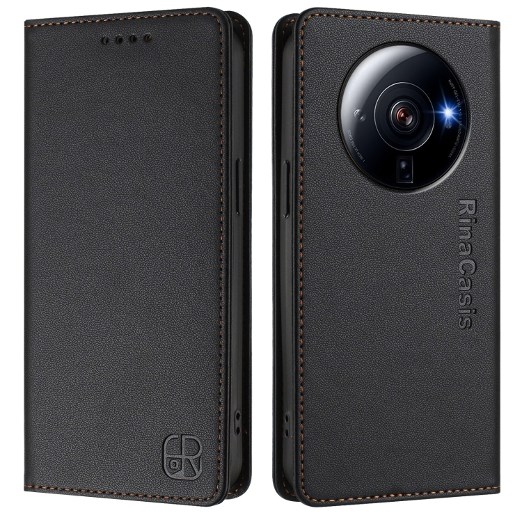 Funda de Cuero con Doble Pliegue y Succión Magnética Rfid para Xiaomi 12S Ultra Rc01 (Negra)