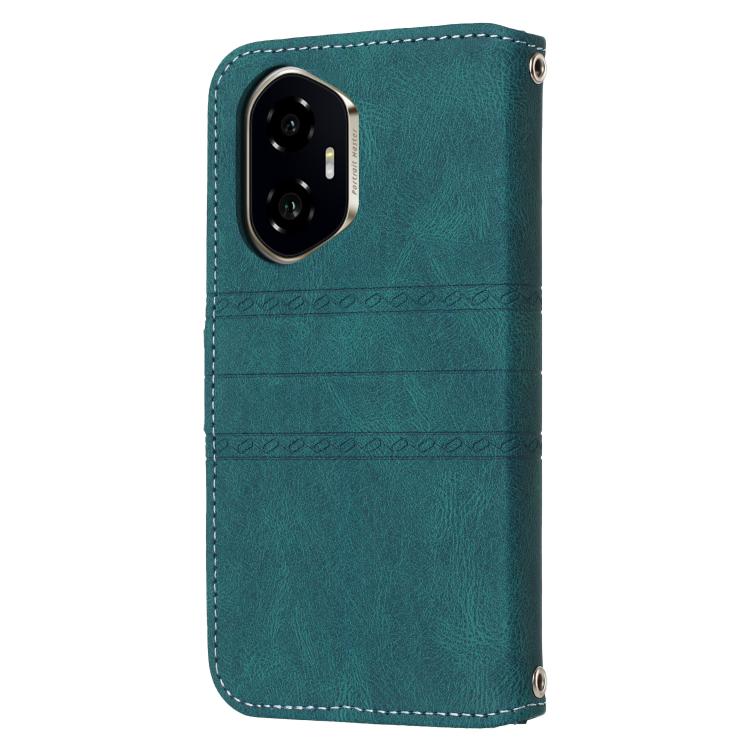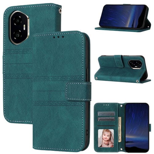 Funda de Cuero para Honor 300 con Efecto Piel de Serpiente y Rayas en Relieve (Verde Oscuro)