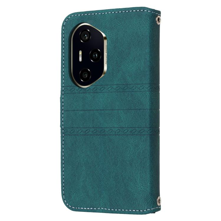 Funda de Cuero efecto Piel de Serpiente y Rayas para Honor 300 Pro 5G/300 Ultra 5G (Verde Oscuro)