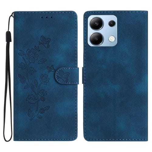 Funda de Cuero con Estampado de Flores y Mariposas para Redmi Note 13 4G (Azul)