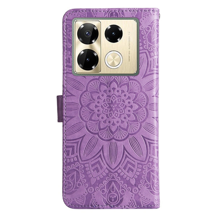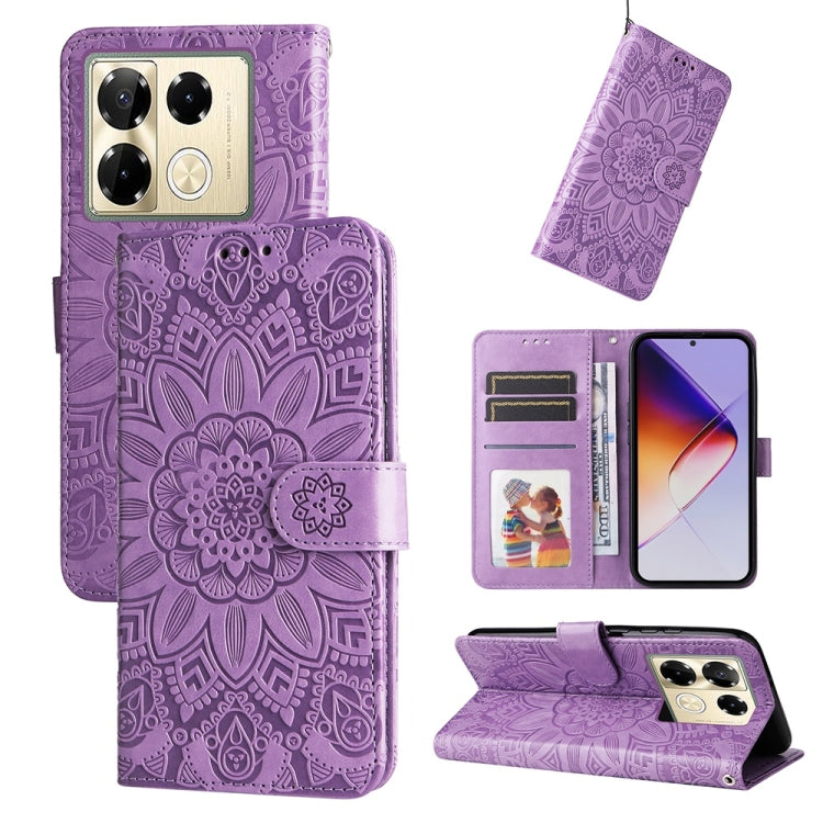 Funda de Cuero con Estampado de Girasoles en Relieve para Infinix Note 40 Pro 4G/5G y Pro+ (Morado)