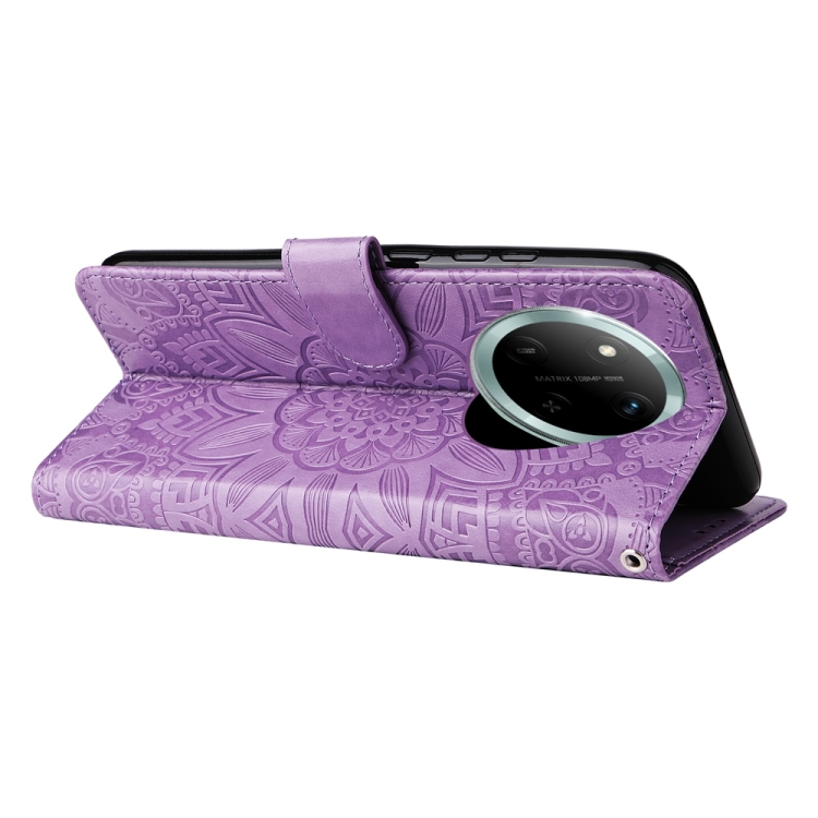 Funda de Cuero Honor X9C Magic7 Lite con Estampado de Girasoles en Relieve (Morado)