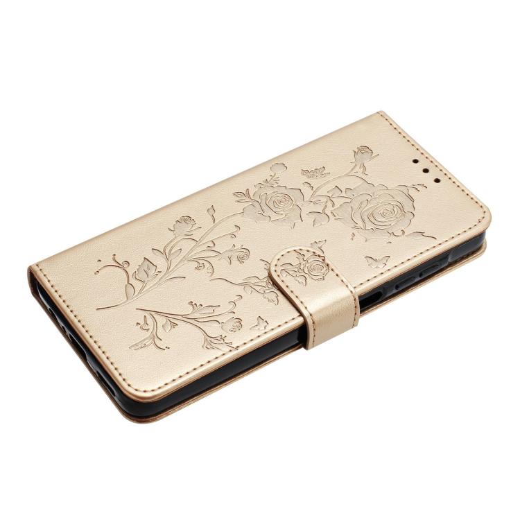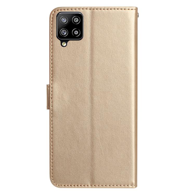 Funda de cuero con estampado de rosas en relieve para Samsung Galaxy A42 (dorada)