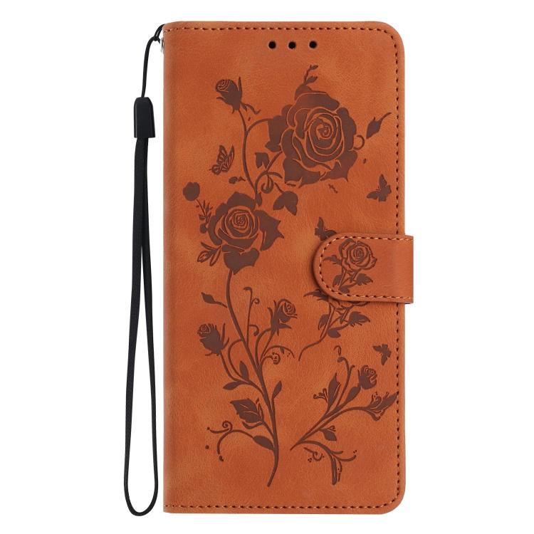 Funda de cuero con estampado de rosas en relieve para Samsung Galaxy S22 5G (marrón)
