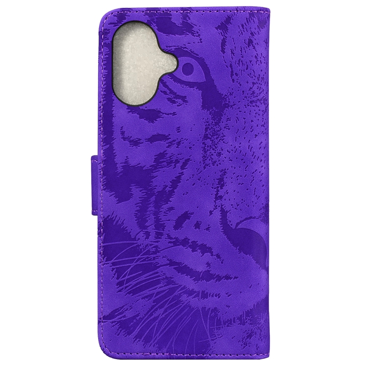 Funda de Cuero para iPhone 16 Estampado de Tigre (Morado)