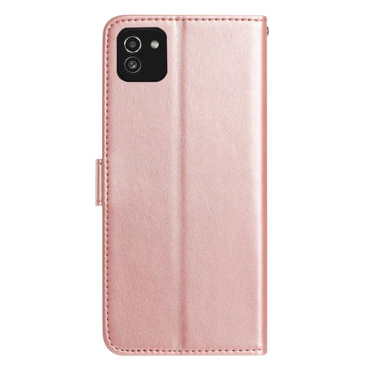 Funda de cuero con estampado floral en relieve para Samsung Galaxy A03 (oro rosa)
