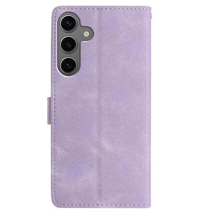 Funda de cuero con estampado floral en relieve para Samsung Galaxy S24 FE 5G (morado claro)