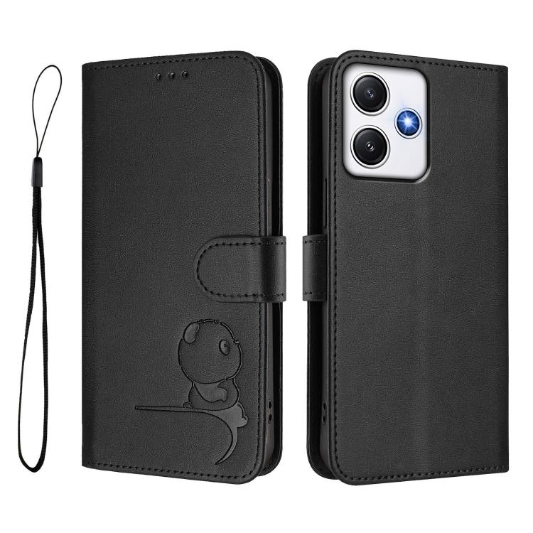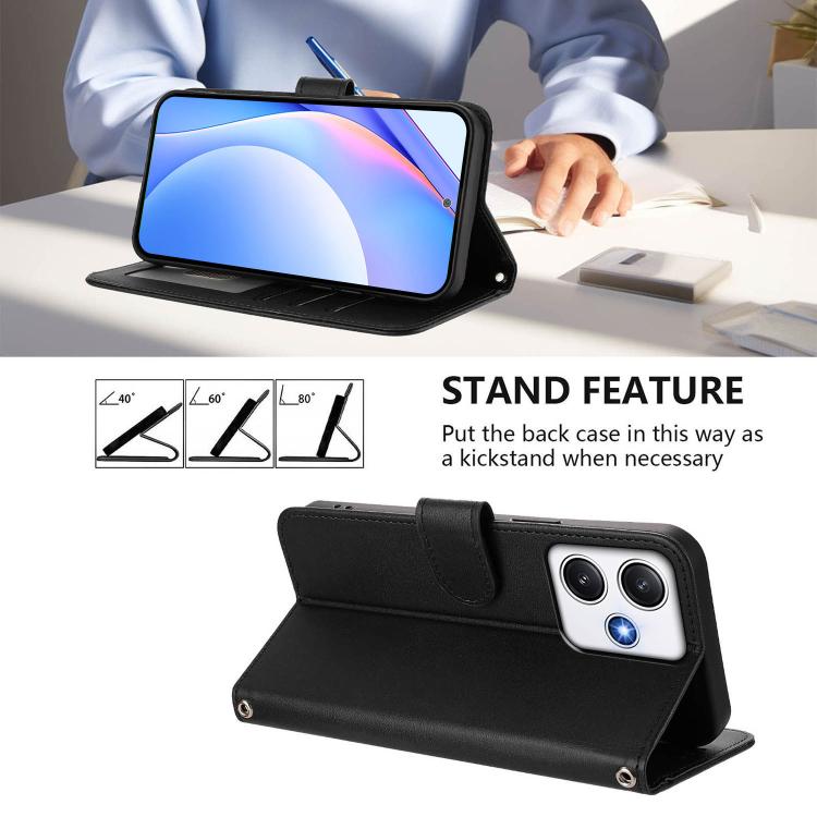Funda de cuero con estampado RFID y cordón para Redmi 12 4G / 12 5G Global / India (negro)