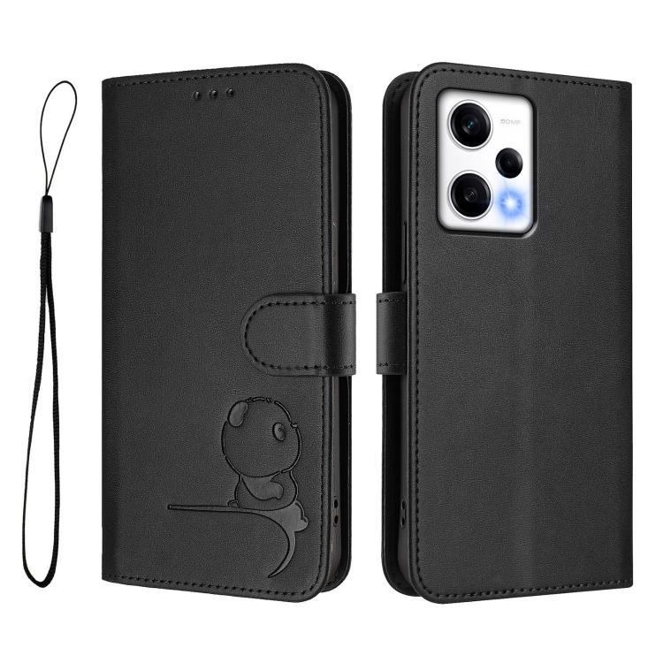Funda de cuero con estampado RFID y cordón para Redmi Note 12 Pro 5G (Global/India) (Negro)