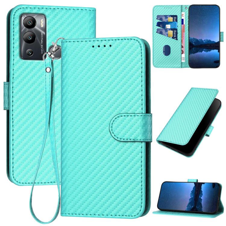 Funda de Cuero con Hebilla de Fibra de Carbono y Cordón para Infinix Hot 12I YX0070 (Azul Claro)