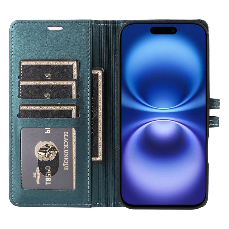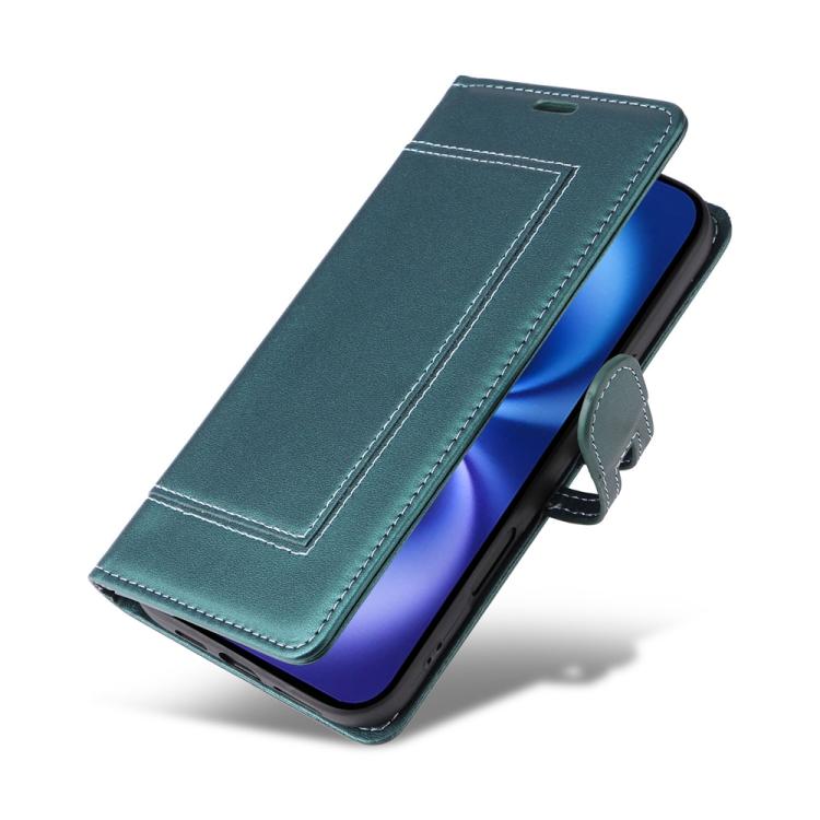 Funda de cuero con hebilla magnética cosida para iPhone 17 (verde)