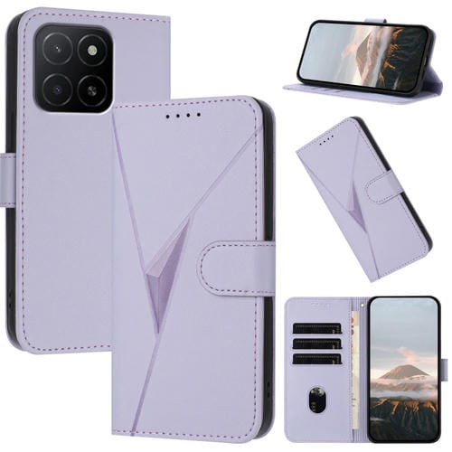 Funda de Cuero con Hebilla y Diseño Triángulos para Honor X5B/X5B Plus (Morado Claro)