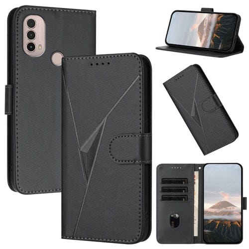 Funda de Cuero con Hebilla y Diseño Triangular para Motorola Moto E40 (Negra)