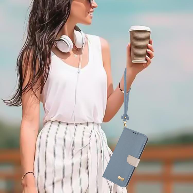 Funda de cuero con lazo metálico y correa para la mano para Xiaomi 14T (azul claro)