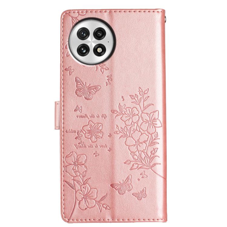 Funda de Cuero para OnePlus 13 con Mariposas y Flores (Oro Rosa)