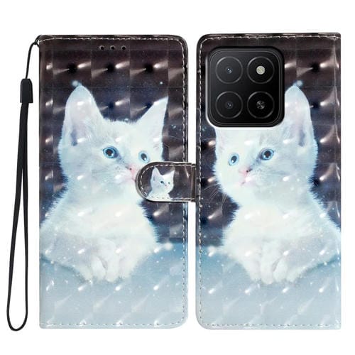 Funda de Cuero con Patrón 3D para Honor X5B 4G (Gato Blanco)