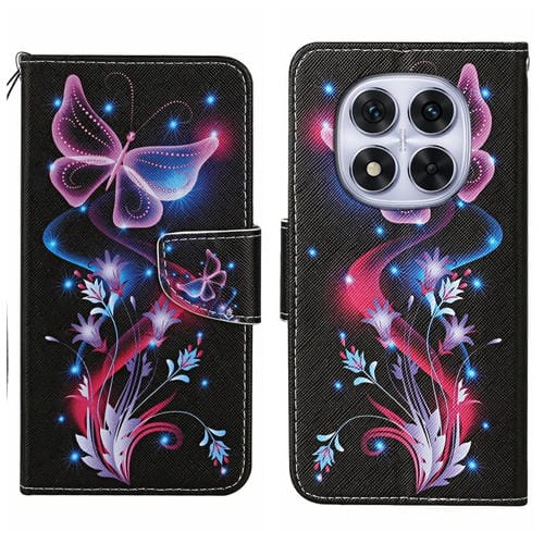 Funda de Cuero con Patrón de Dibujo de Colores para Redmi Note 14 Pro 5G (Mariposa Fluorescente)