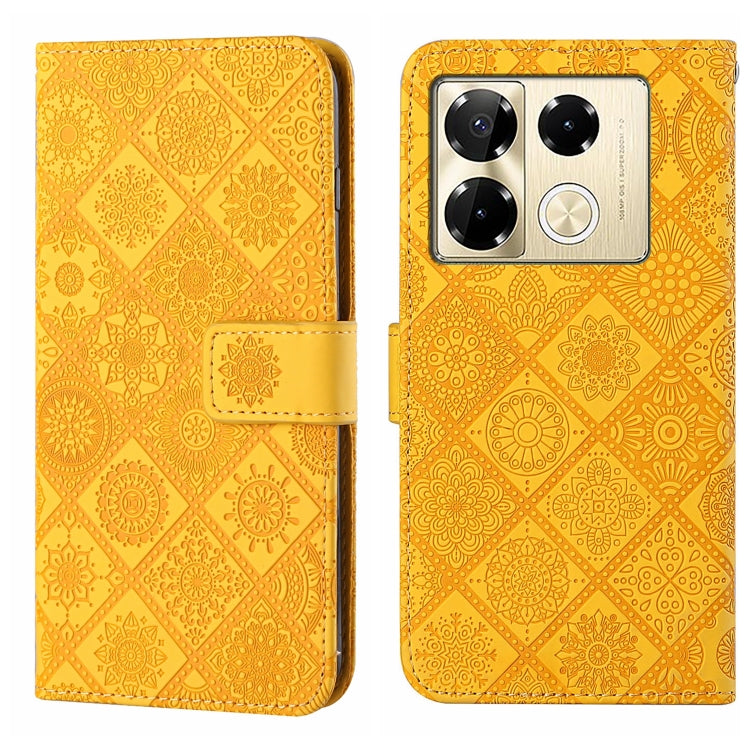 Funda de Cuero con Patrón en Relieve Estilo Étnico para Infinix Note 40 Pro (Amarillo)