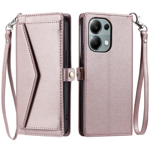 Funda de Cuero con Ranura para Múltiples Tarjetas y Billetera Global para Redmi Note 13 Pro 4G con Cordón (Oro Rosa)