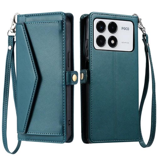 Funda de Cuero con Ranura para Múltiples Tarjetas y Cordón para Xiaomi Poco F6 Pro (Verde)
