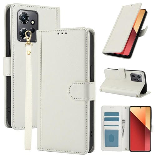 Funda de Cuero con Ranuras para Tarjetas y Tacto de Piel Global para Redmi Note 12 4G con Cordón Doble (Blanco)