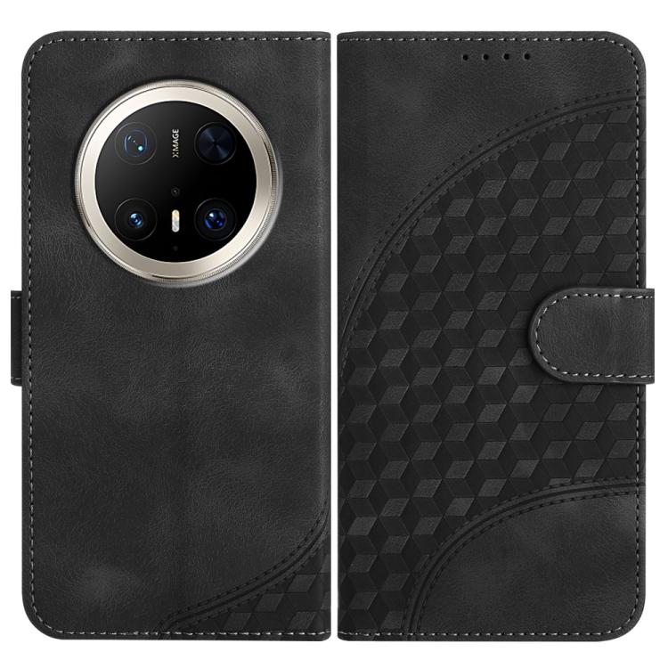 Funda de Cuero con Relieve Cabeza de Elefante para Huawei Mate 70 Pro y Mate 70 Pro+ con Cordón (Negro)