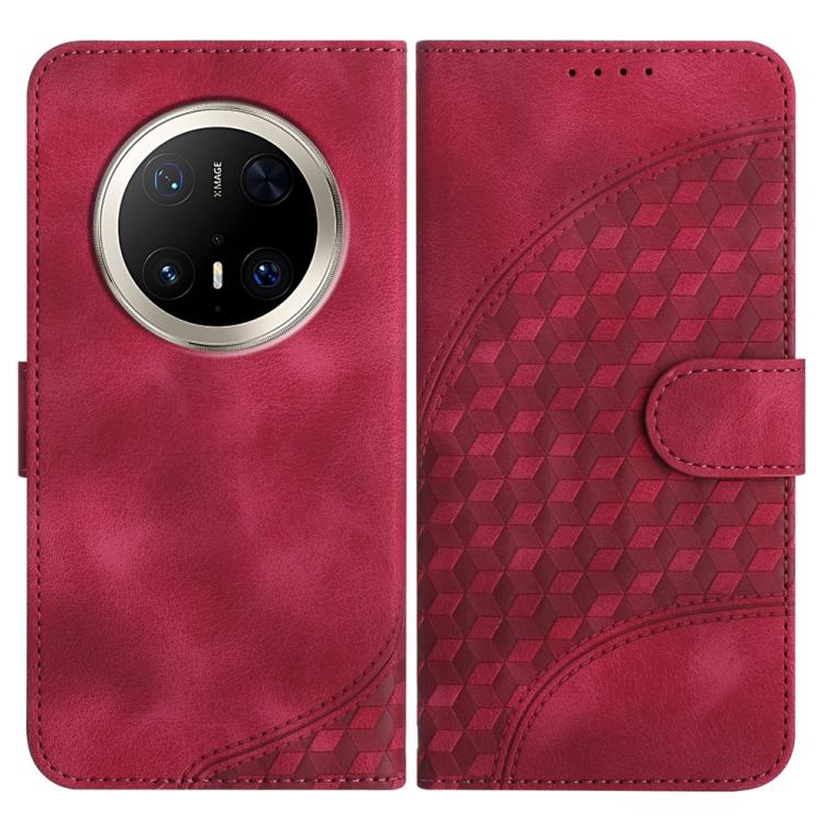 Funda de Cuero con Relieve de Cabeza de Elefante para Huawei Mate 70 Pro y Mate 70 Pro+ con Cordón (Rosa Rojo)