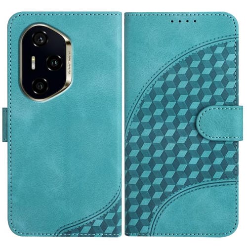 Funda de Cuero con Relieve de Cabeza de Elefante para Honor 300 Pro y 300 Ultra con Cordón (Azul Claro)