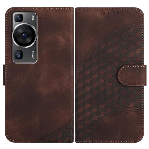 Funda de Cuero con Relieve Cabeza de Elefante para Huawei P60 y P60 Pro con Cordón (Café)