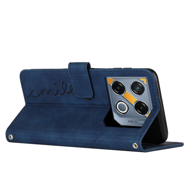 Funda de Cuero con Relieve de Corazón y Cordón Largo para Infinix Gt 20 Pro (Azul)
