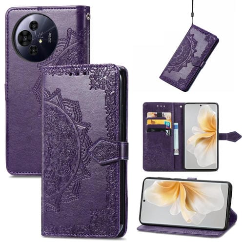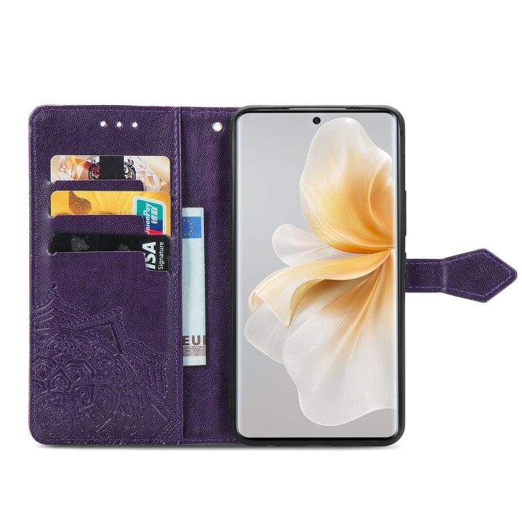 Funda de Cuero Nxtpaper con Relieve Flor de Mandala para TCL 50 Pro (Morado)