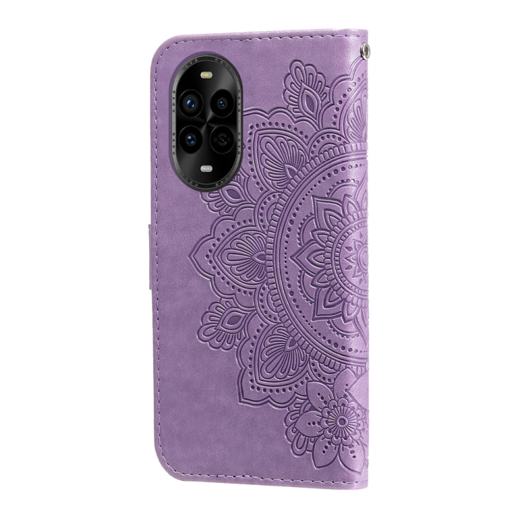 Funda de Cuero con Relieve Flores Siete Pétalos para Huawei Nova 13 Pro (Morado Claro)