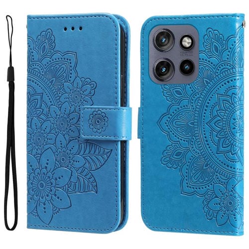 Funda de Cuero con Relieve de Flores de Siete Pétalos para Motorola Edge 50 Neo / Thinkphone 25 (Azul)