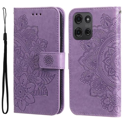 Funda de Cuero con Relieve de Flores de Siete Pétalos para Motorola Moto G75 5G (Morado Claro)