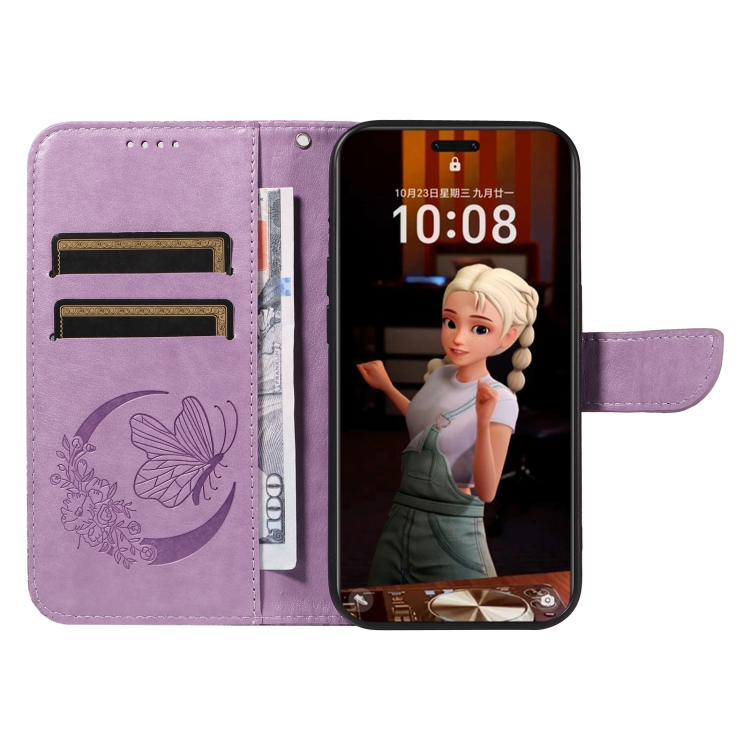 Funda de Cuero con Relieve de Mariposa para Honor Magic7 Pro (Morada)